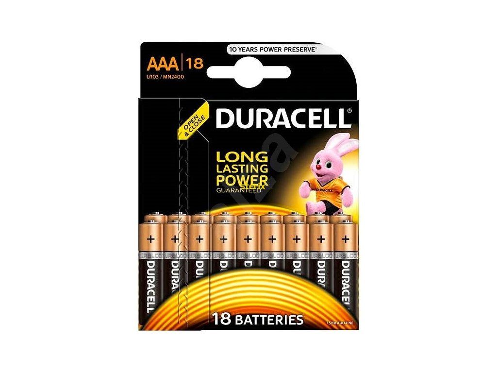 - Ekonomické balení po 18 ks alkalických baterií Duracell Base Duralock AAA na blistru.