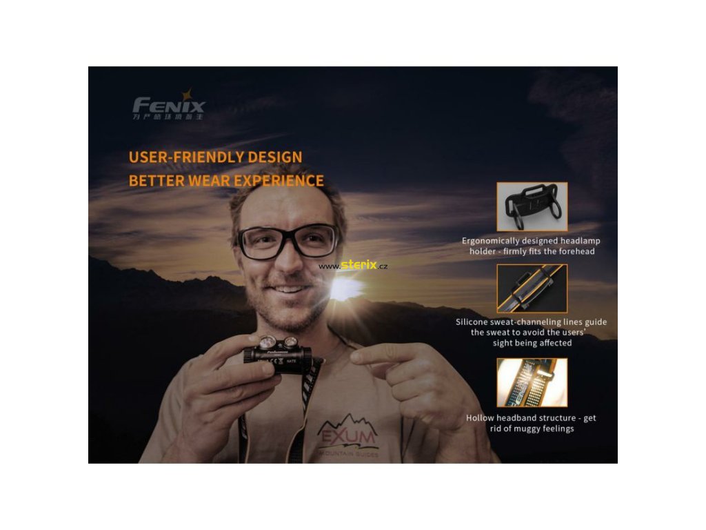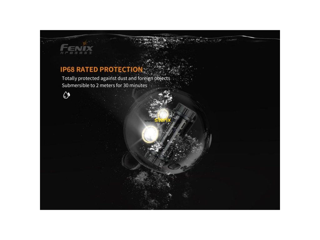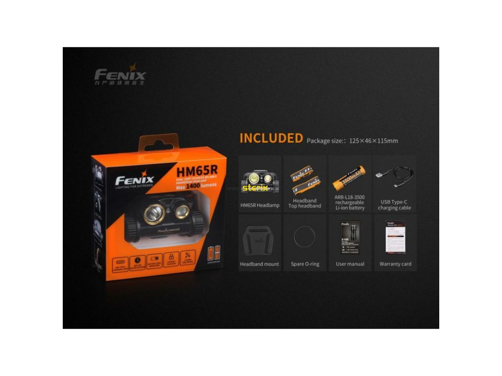 - Součástí balení je Li-ion akumulátor Fenix 18650 3500 mAh, popruhy na hlavu, nabíjecí kabel USB-C, náhradní o-kroužek.