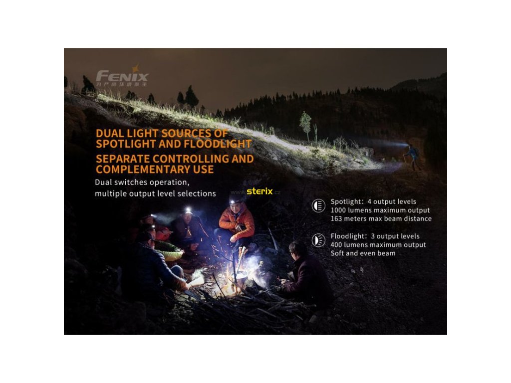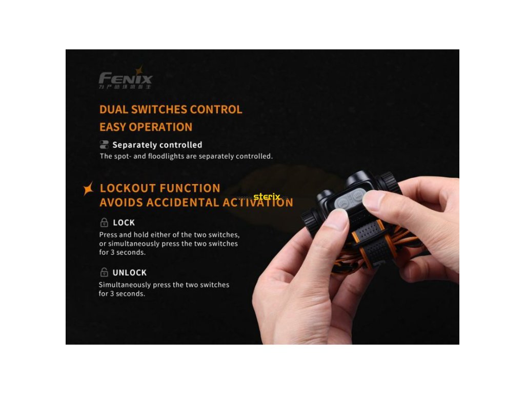 Ovládání obou LED je na sobě nezávislé, světlo z obou reflektorů lze libovolně kombinovat a dosáhnout tak světelného toku až 1400 lumenů.
