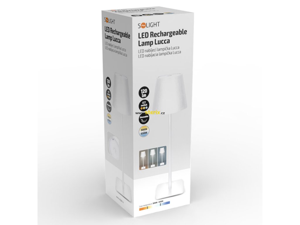LED nabíjecí lampička Lucca, 120lm, změna CCT, stmívání, bílá