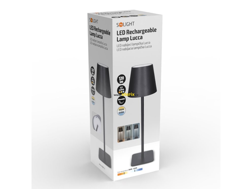 LED nabíjecí lampička Lucca, 120lm, změna CCT, stmívání, černá
