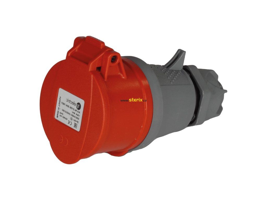 Třífázová kabelová zásuvka přímá, 5-pólová, 400V/16A, IP44.