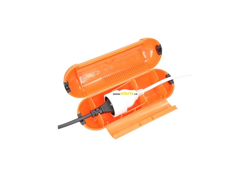 Odolné ochranné pouzdro na kabely chrání elektrické spojení před vlhkostí, prachem a mechanickým poškozením. Díky krytí IP44 je vhodné pro venkovní použití, například na zahradě, stavbě ale skvěle poslouží i v interiéru. Zabraňuje oxidaci konektorů a omezuje riziko nechtěného odpojení kabelů při pohybu. Určeno pro jedno spojení s jedním vstupem a výstupem, tzn. pro jednozásuvkové prodlužovací přívody. Jednoduché, ale účinné řešení pro bezpečné připojení všude tam, kde je potřeba ochrana proti nepřízni počasí.