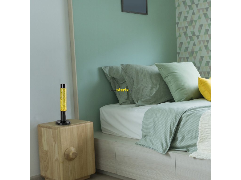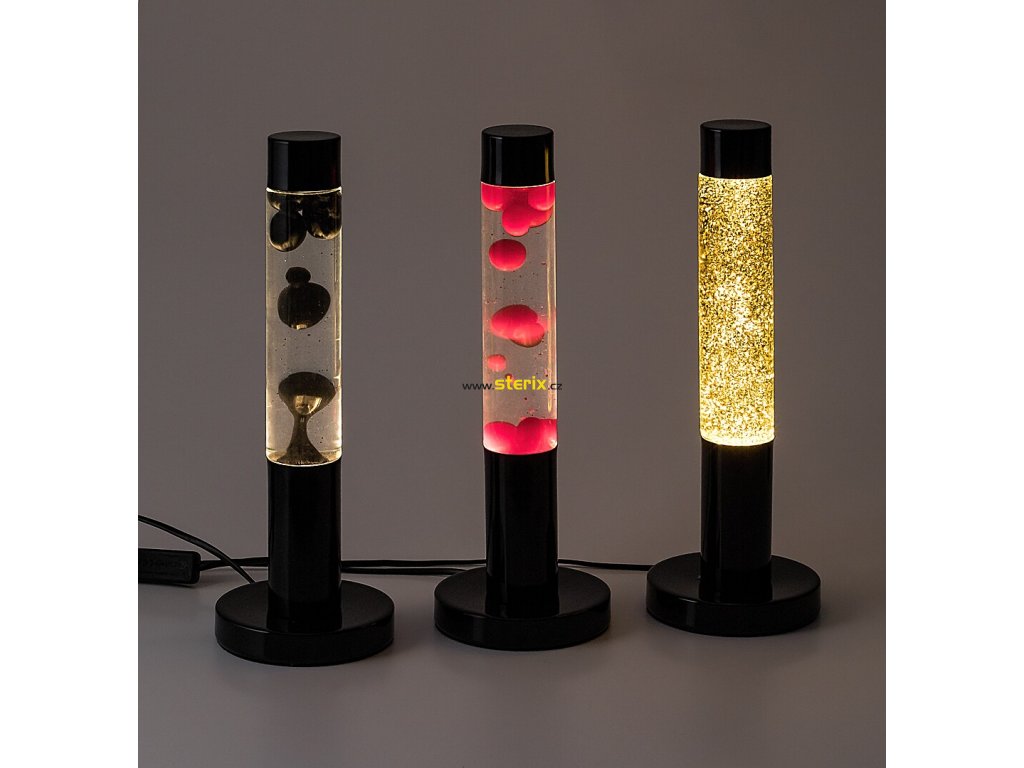 Dekorativní lávovou lampu Rabalux Lavastic doporučujeme všem, kteří hledají působivé osvětlení s jedinečnou atmosférou a slavnostním vzhledem. Vnitřní část lampy je naplněna zlatavě zbarvenou tekutinou s třpytivými částicemi slídy, což tomuto modelu dodává zářivý, slavnostní vzhled. Válcovitá konstrukce a dekorativní základna ve tvaru disku jsou vyrobeny z kovu v černé barvě, zatímco stínítko je z průhledného skla. Tato lávová lampa se ovládá vypínačem na kabelu a disponuje vestavěným LED světelným zdrojem, který zaručuje dlouhou životnost. Velkou předností této dekorativní lampy je možnost snadného přesunu mezi místnostmi, takže její magickou atmosféru si může kdykoliv užít každý člen rodiny. Je ideální volbou do obývacího pokoje, dětského pokoje nebo ložnice.