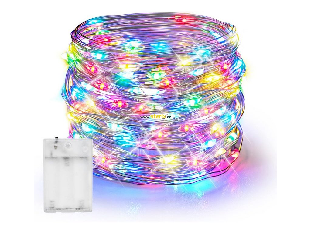 LED RGB dekorační stříbrná girlanda 50 LED, 3x baterie AA, 500 cm, IP20