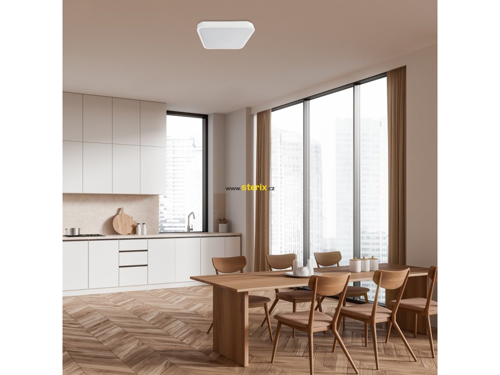 Stropní svítidlo Rabalux Alenzo je doporučeno těm, kteří při výběru svítidla upřednostňují funkčnost. Čtvercový LED panel je vyroben v technickém stylu, kompletně z plastu, v bílé barvě. Díky své velké ploše efektivně osvětluje místnost a zároveň nabízí chytré funkce. Obsahuje vestavěný LED světelný zdroj s DIP přepínačem pro nastavení teploty barvy ve třech různých variantách. Jelikož je stropní svítidlo chráněno proti vniknutí pevných částic o průměru 1 mm nebo větších a proti stříkající vodě z jakéhokoli směru, je ideální nejen do obývacího pokoje a pracovny, ale lze jej instalovat i do koupelny. LED technologie zajišťuje energeticky úsporný provoz a dlouhou životnost.