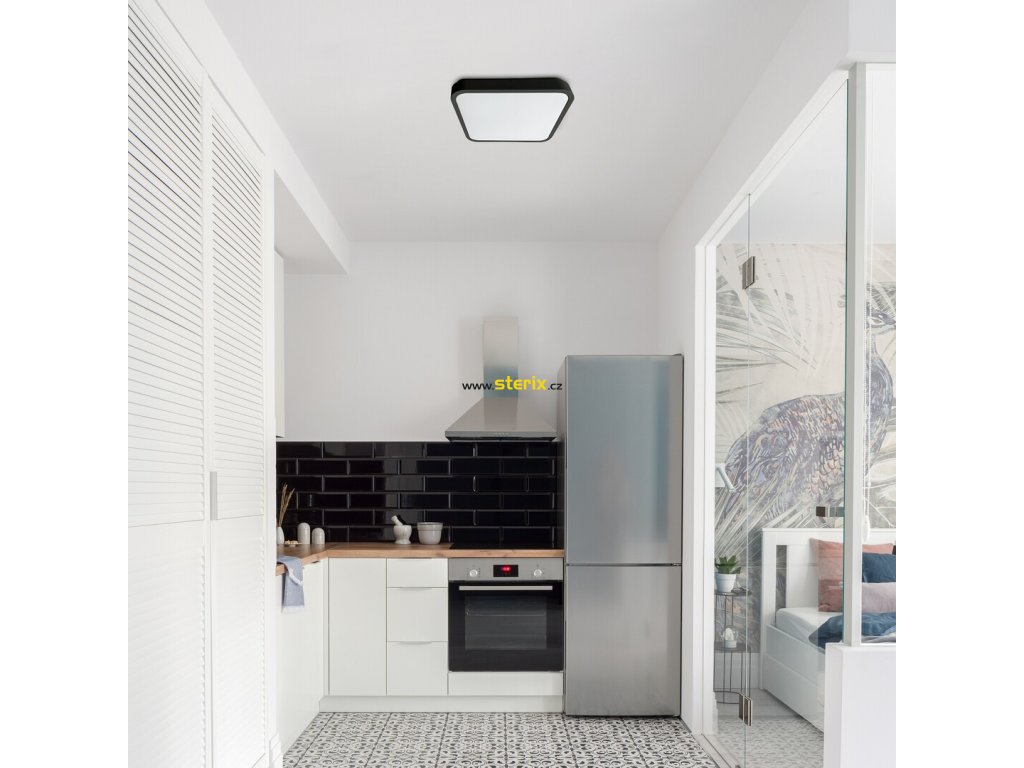 Stropní svítidlo Rabalux Alenzo je doporučeno těm, kteří při výběru svítidla upřednostňují funkčnost. Čtvercový LED panel je vyroben v technickém stylu, kompletně z plastu, v černé barvě s bílým stínidlem. Díky své velké ploše efektivně osvětluje celou místnost. Kromě toho nabízí chytré funkce a obsahuje vestavěný LED světelný zdroj se třemi nastaveními teploty barvy, které lze měnit pomocí DIP přepínače. Jelikož je stropní svítidlo chráněno proti vniknutí pevných částic o průměru 1 mm nebo větších a proti stříkající vodě z jakéhokoli směru, je ideální nejen do obývacího pokoje a pracovny, ale doporučujeme jej také do koupelny. Díky integrované LED technologii se svítidlo vyznačuje energeticky úsporným provozem a dlouhou životností.