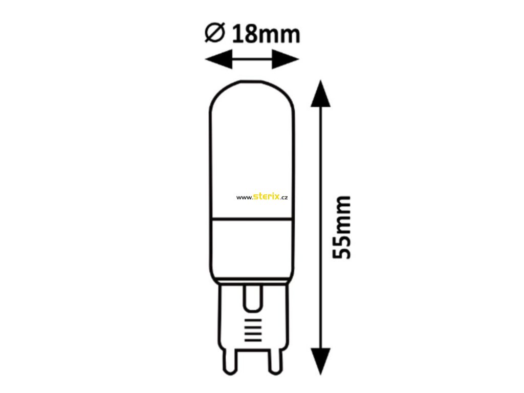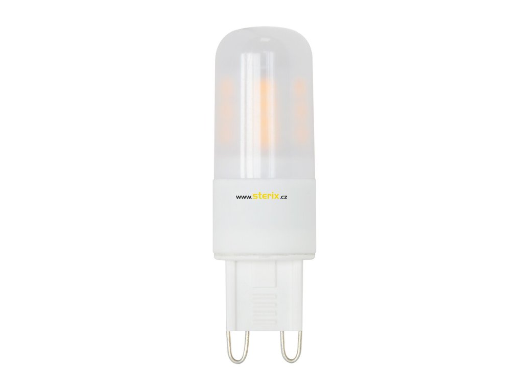 - Matná plastová baňka ve tvaru kapsle s paticí G9