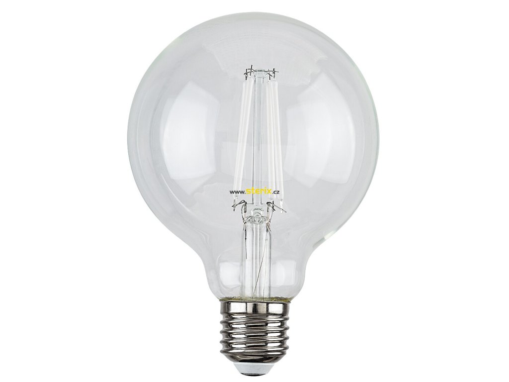 - Moderní a úsporná skleněná čirá LED Filament žárovka tvar koule G95 s příkonem 7W a paticí E27