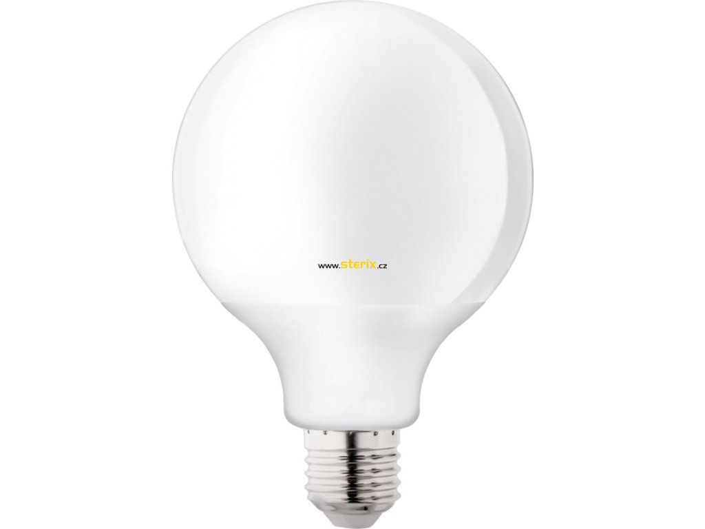 - Moderní a úsporná plastová matná SMD LED žárovka tvar koule G95 s příkonem 15W a paticí E27