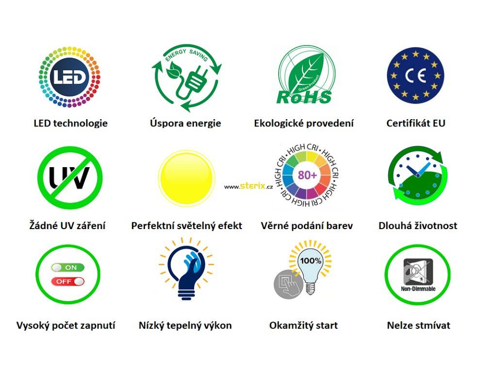 - Vysoký počet spínacích cyklů, okamžitý start a dlouhá životnost 30 000 hodin