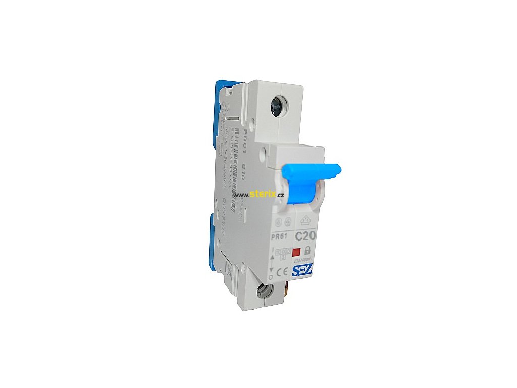 Jednofázový jistič SEZ PR61 C 20A na DIN lištu je jednopólový jistič s charakteristikou zátěže C a maximálním proudem 20 A.