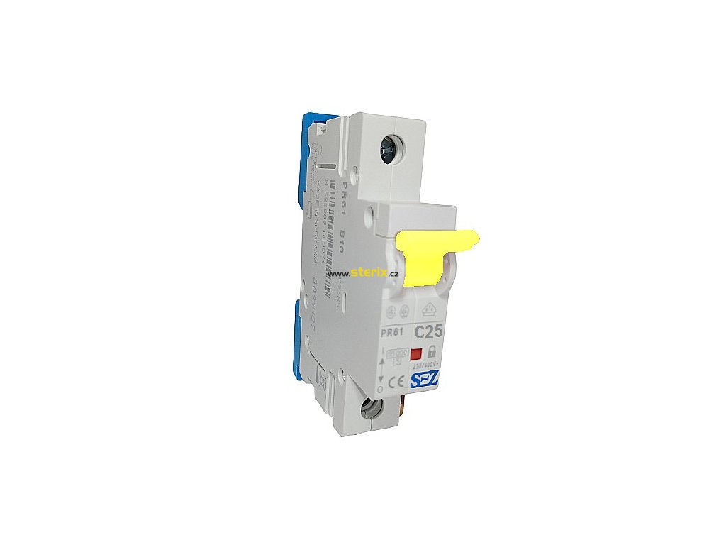 Jednofázový jistič SEZ PR61 C 25A na DIN lištu je jednopólový jistič s charakteristikou zátěže C a maximálním proudem 20 A.