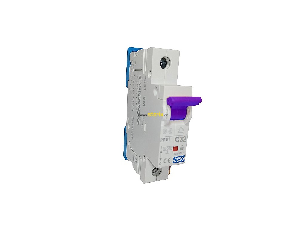 Jednofázový jistič SEZ PR61 C 32A na DIN lištu je jednopólový jistič s charakteristikou zátěže C a maximálním proudem 32 A.
