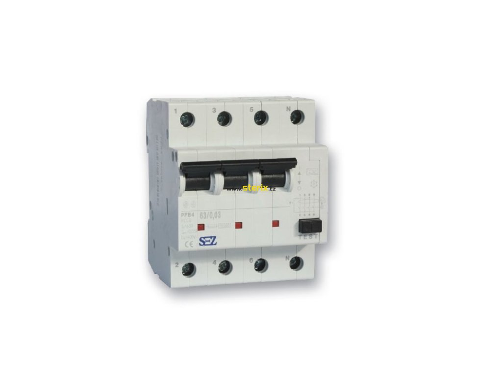 Proudový chránič SEZ PFB4 40/0,03 na DIN lištu je čtyřpólový proudový chránič s maximálním proudem 40 A a jmenovitým reziduálním proudem 0,03 A a zkratovým proudem 10 kA.