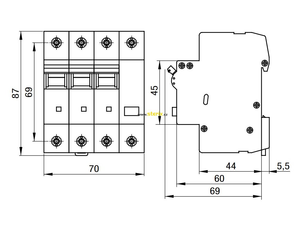 - Upevnění na lištu DIN 35x7,5 EN 60 715