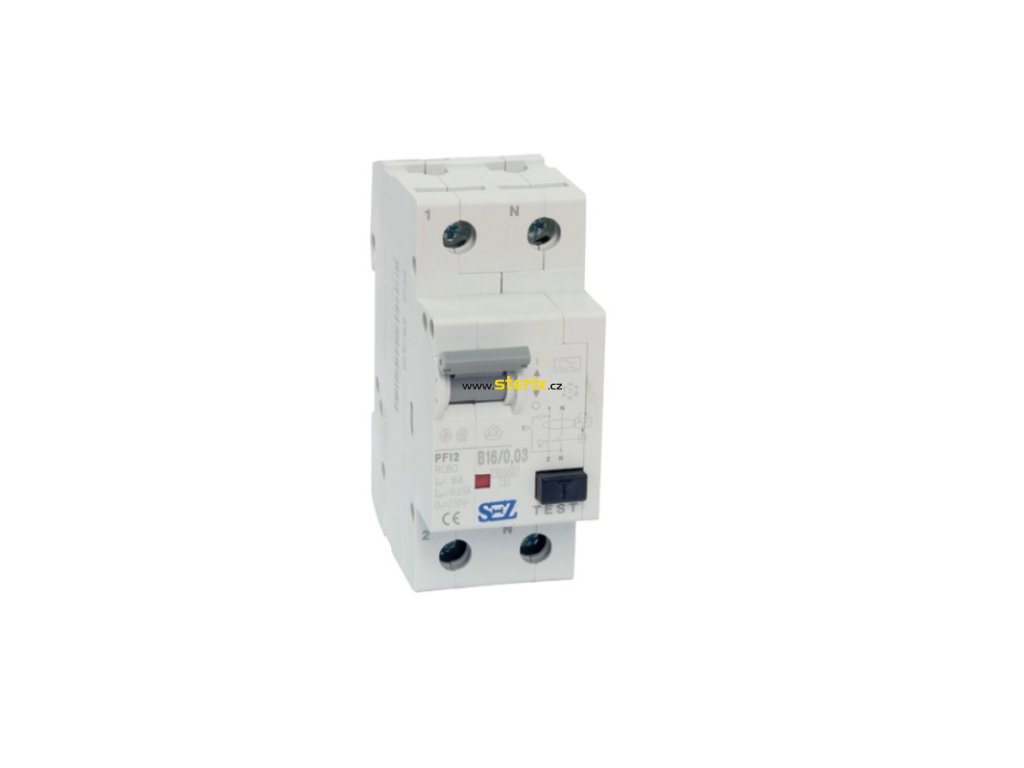 Proudový chránič s nadproudovou ochranou SEZ PFI2 B16/0,1 na DIN lištu je dvoupólový proudový chránič s maximálním proudem 16 A a jmenovitým reziduálním proudem 0,1 A s charakteristikou zátěže B.