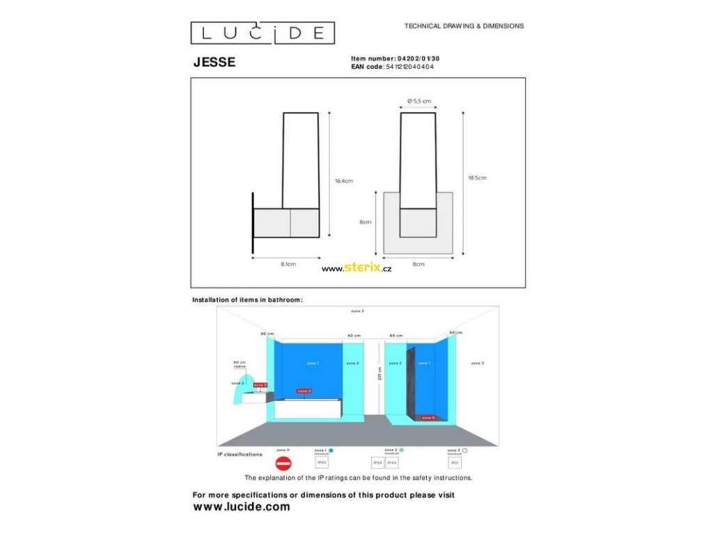 - JESSE koupelnové nástěnné svítidlo LUCIDE 04202/01/30, styl moderní, tvar cylindru (válce)