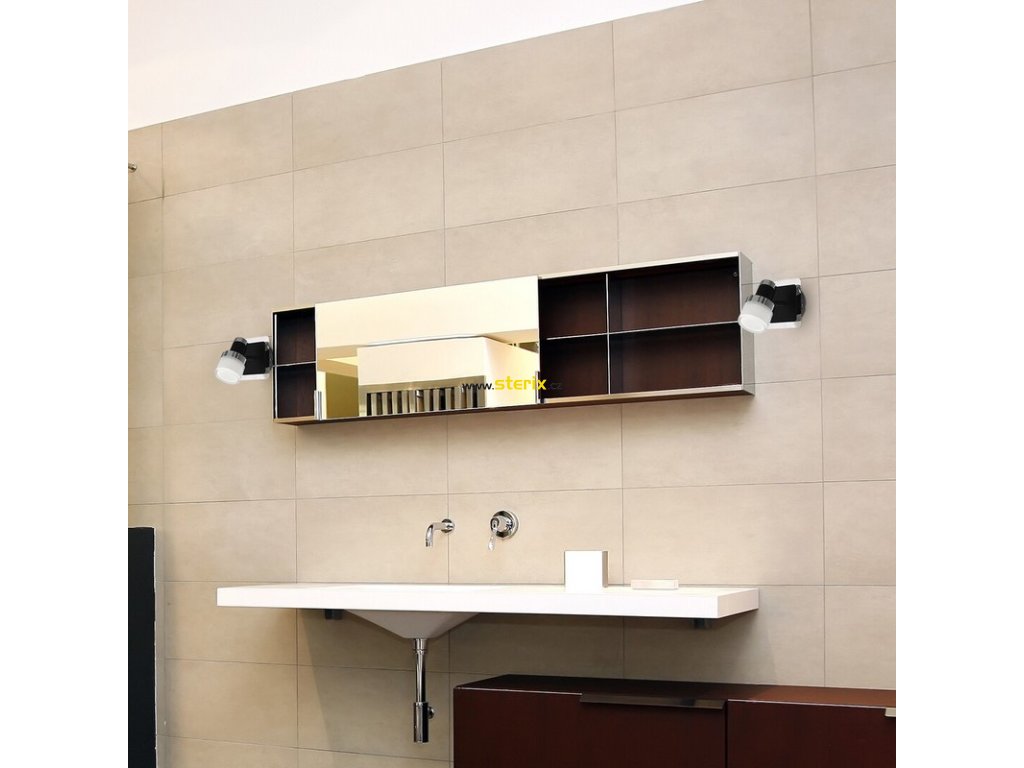 Nástěnné koupelnové svítidlo Harold se svou barevnou kombinací chrom-černá-opál bude skvělým doplňkem vašeho moderního interiéru koupelny. Jako zvláštní prvek je třeba zvýraznit čtvercový dvojitý dekorativní základ se zaoblenými rohy. Model vyrobený z kovu a plastu lze namontovat blízko zrcadla nad umývadlo nebo dokonce nad vanu: jeho přirozené bílé světlo vytváří čistý moderní efekt. Svítidlo Harold má vestavěný, energeticky úsporný LED světelný zdroj s výkonem 5 W, svítivostí 400 lumenů a životností 25 000 hodin. Teplota barev světelného zdroje je 4000 K. Toto koupelnové svítidlo má krytí IP44, které zajišťuje jeho ochranu proti vniknutí předmětů s maximálním průměrem 1 mm, jakož i proti stříkající vodě z libovolného směru. Rozměry svítidla Harold jsou následující: šířka 100 mm, výška 120 mm, vzdálenost od stěny 140 mm.