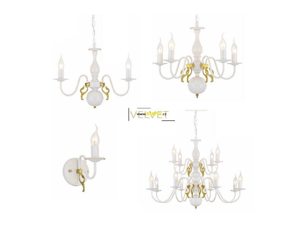 - Svítidlo s povrchovou úpravou v barvě matné bílé a zlaté antické