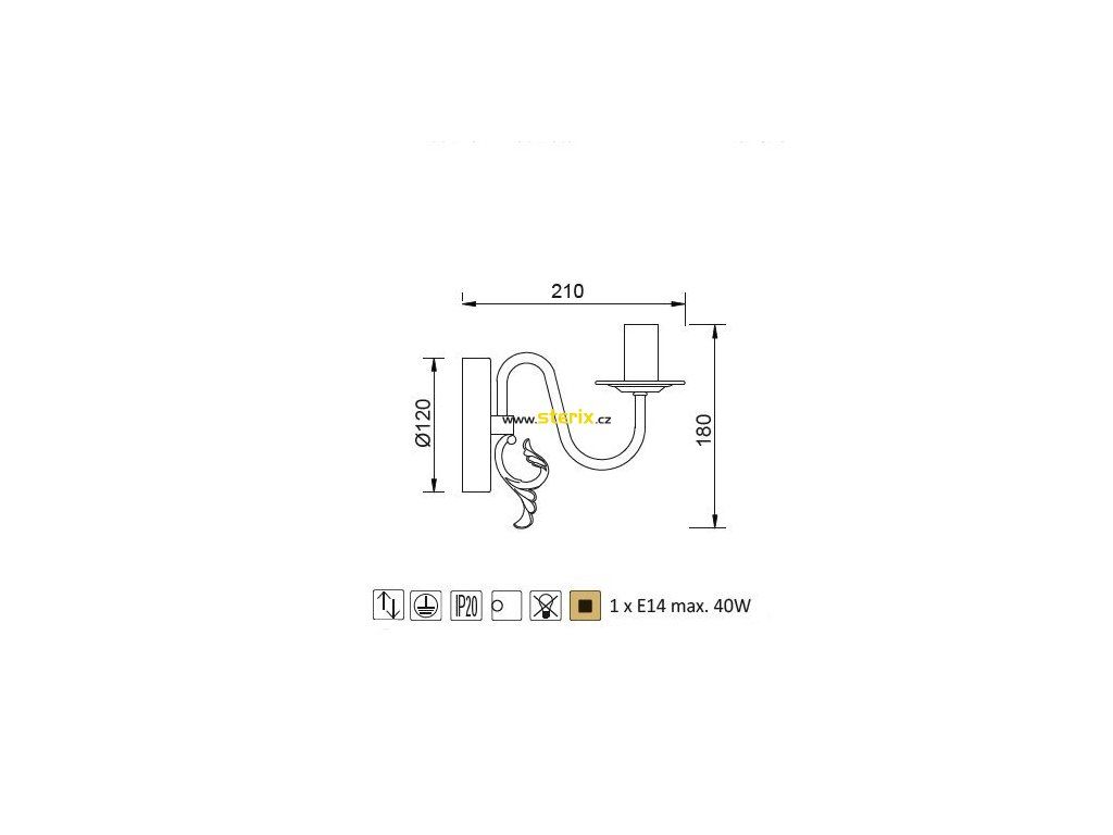 Nástěnné přisazené kovové svítidlo VELVET, barva matná bílá a antik zlatá, objímka pro patici E14, příkon klasického světelného zdroje max. 40W, IP20.