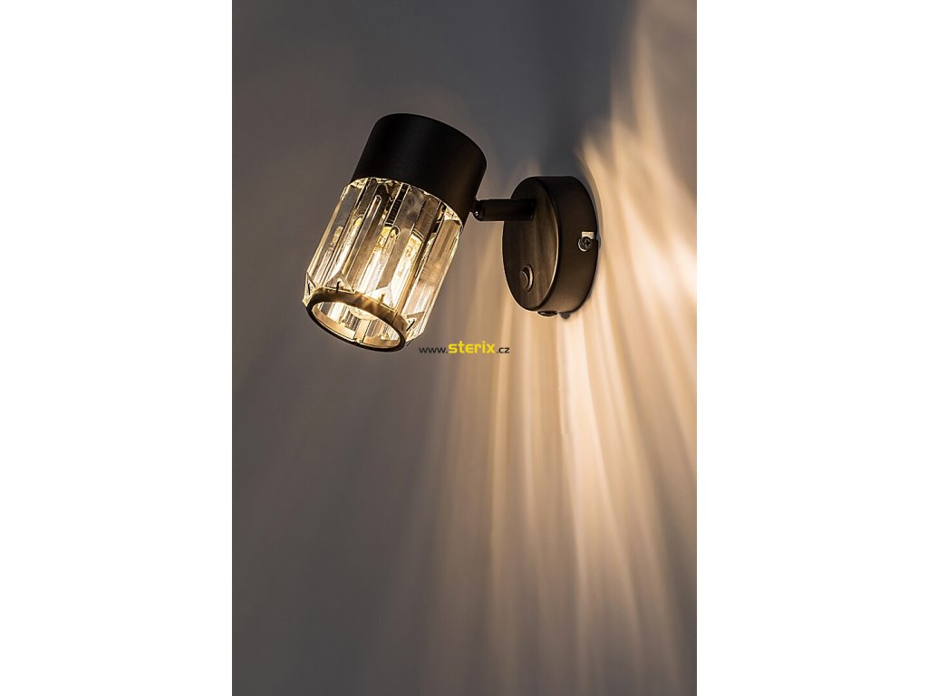 Přisazené nástěnné svítidlo BERY, materiál kov a sklo, barva matná černá a...
