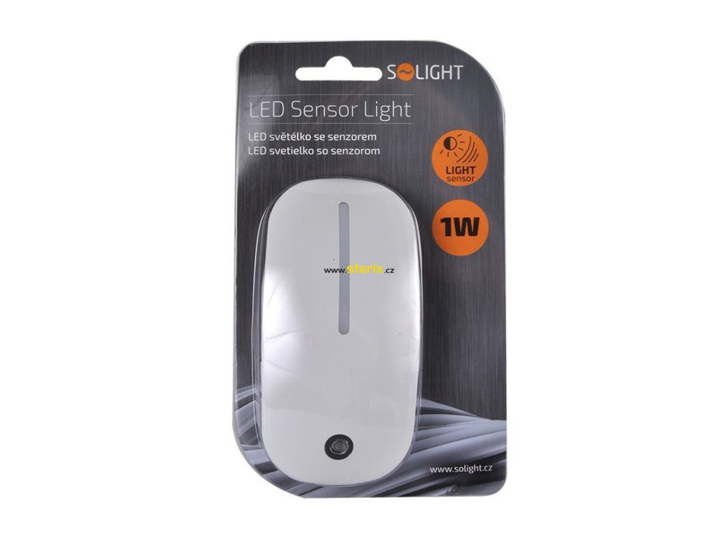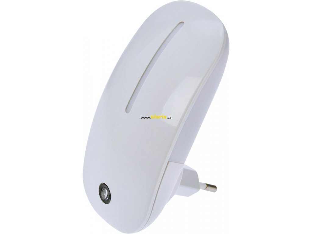 Orientační lampička do zásuvky v bílém provedení se světelným senzorem.- příkon: 1W