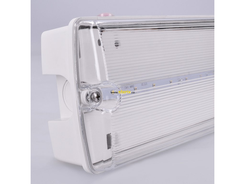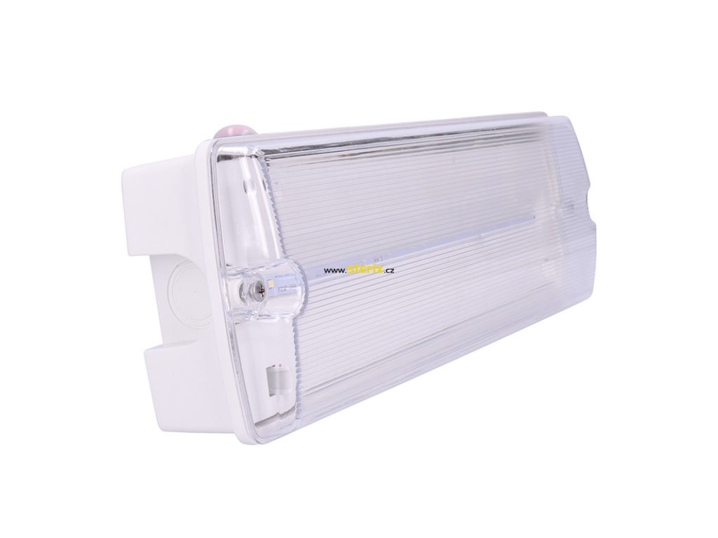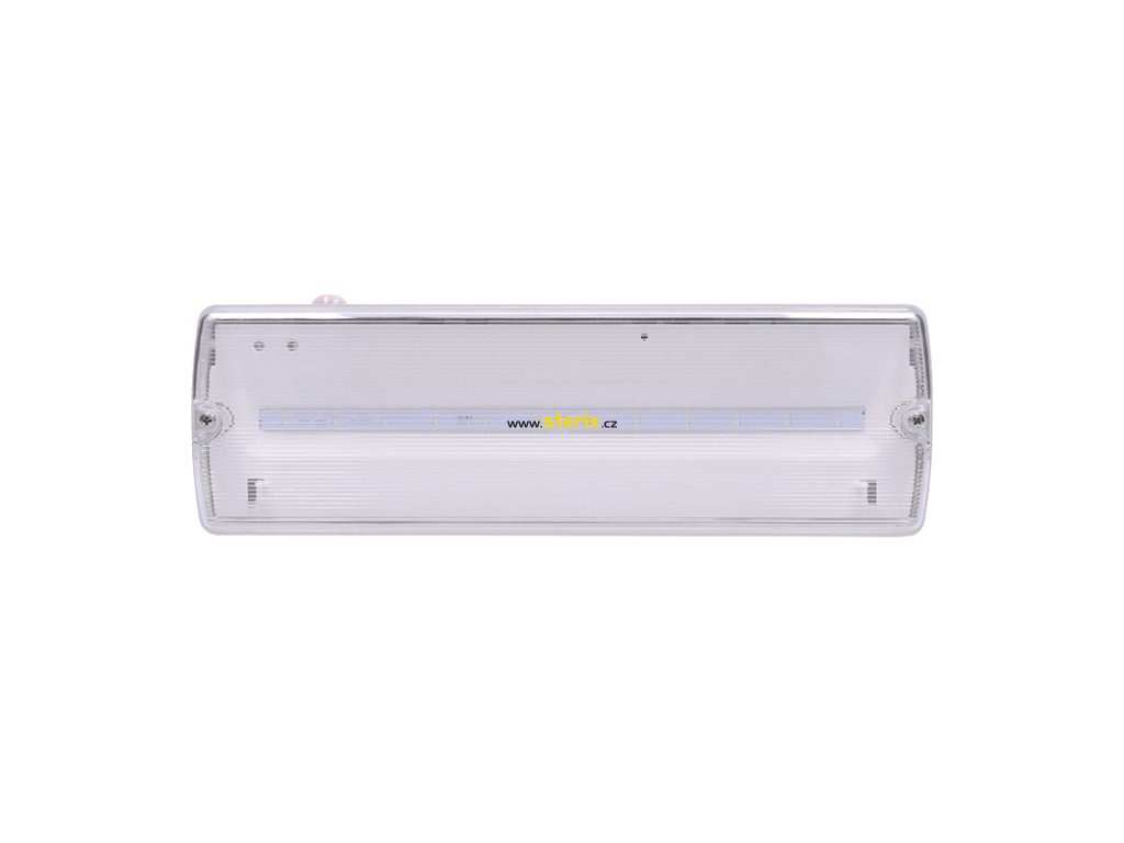 Nouzové LED svítidlo s příkonem 4W nabízí světelný tok 200lm (130 lm v pohotovostním režimu) a dlouhou životnost 30 000 hodin. Baterie LiFePo4 3,2V 1000mAh poskytuje výdrž v režimu nouze minimálně 3 hodiny. Automatický test stavu baterie (měsíční/půlroční) a sada piktogramů jsou samozřejmostí.