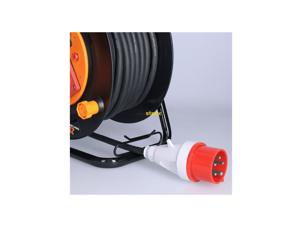 Prodlužovací kabel na bubnu - 1x400V + 2x230V, 25m, 5x1,5mm2, gumový, IP44, černý