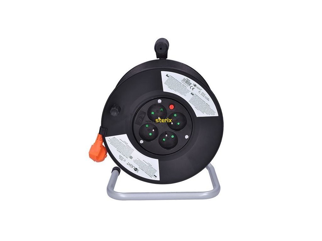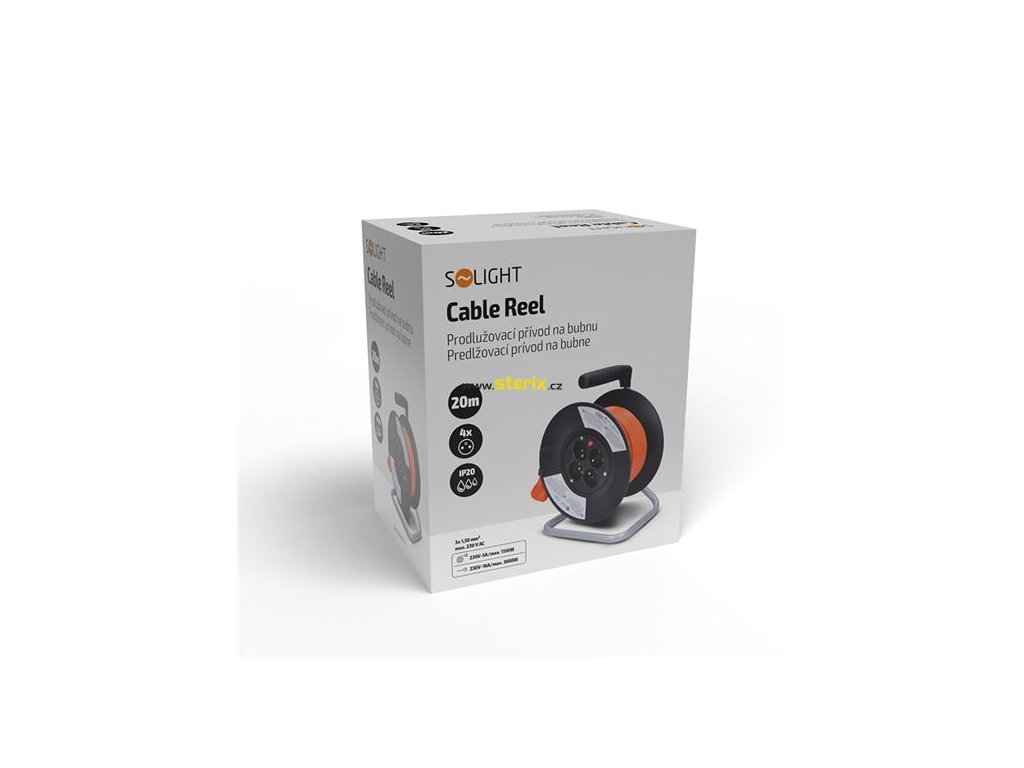Prodlužovací kabel na bubnu - 4 zásuvky, 20m, 3 x 1,5mm, IP20, oranžový