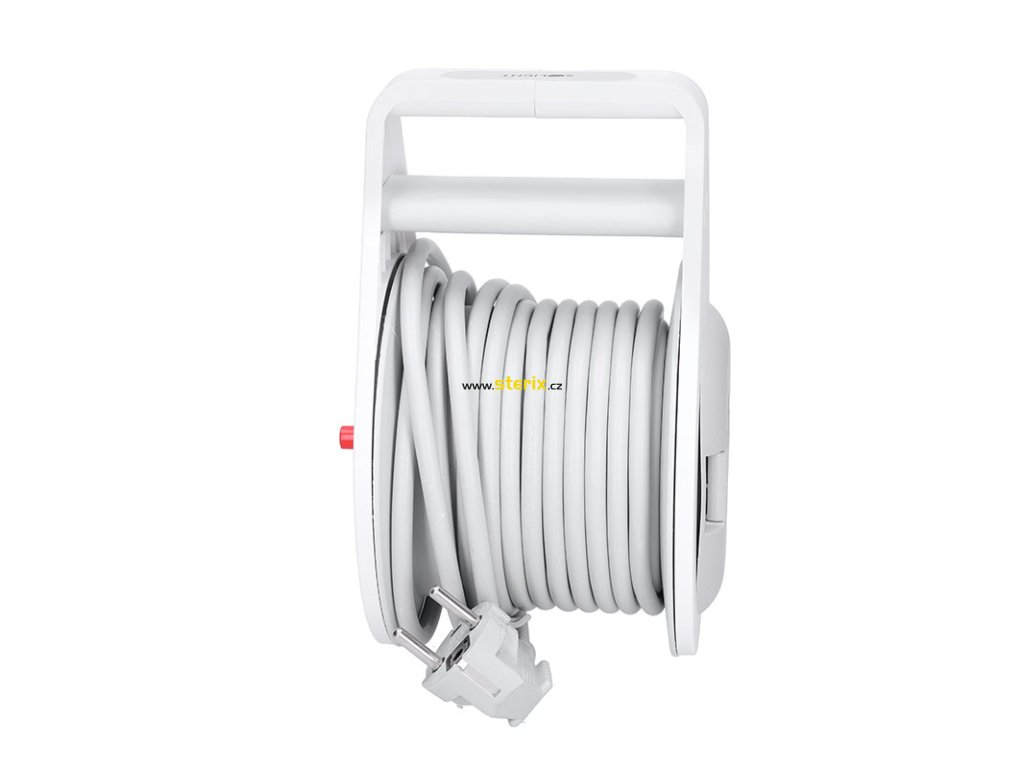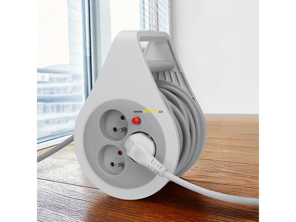 Přestože je buben malý a skladný, zvládne běžnou práci jako větší modely. Tři zásuvky s dětskými pojistkami jsou navíc chráněny i tepelnou pojistkou, která odpojí napájení při přetížení nebo při plné zátěži bez úplného odvinutí kabelu. 10 metrů délky poskytuje dostatek dosahu pro běžné použití v interiéru.
