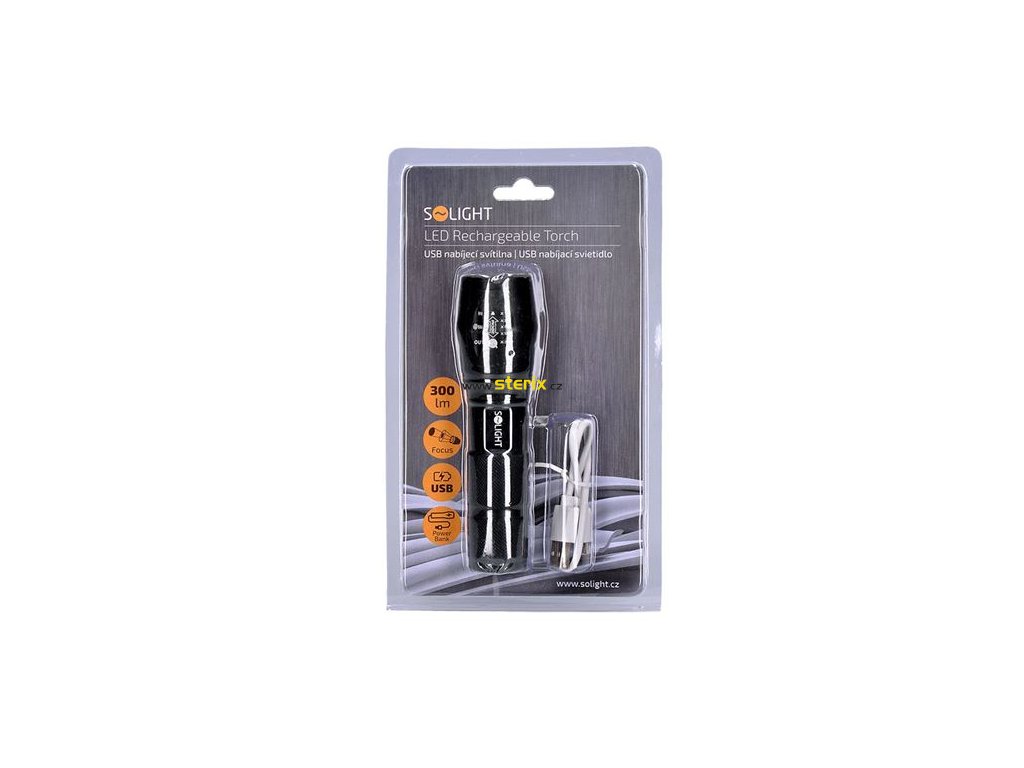 Nabíjecí LED svítilna, Zoom, USB Powerbanka, 300Lm, 1x baterie Li-ion 5V/1800mAh