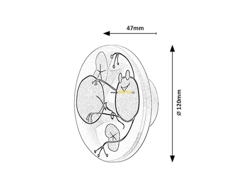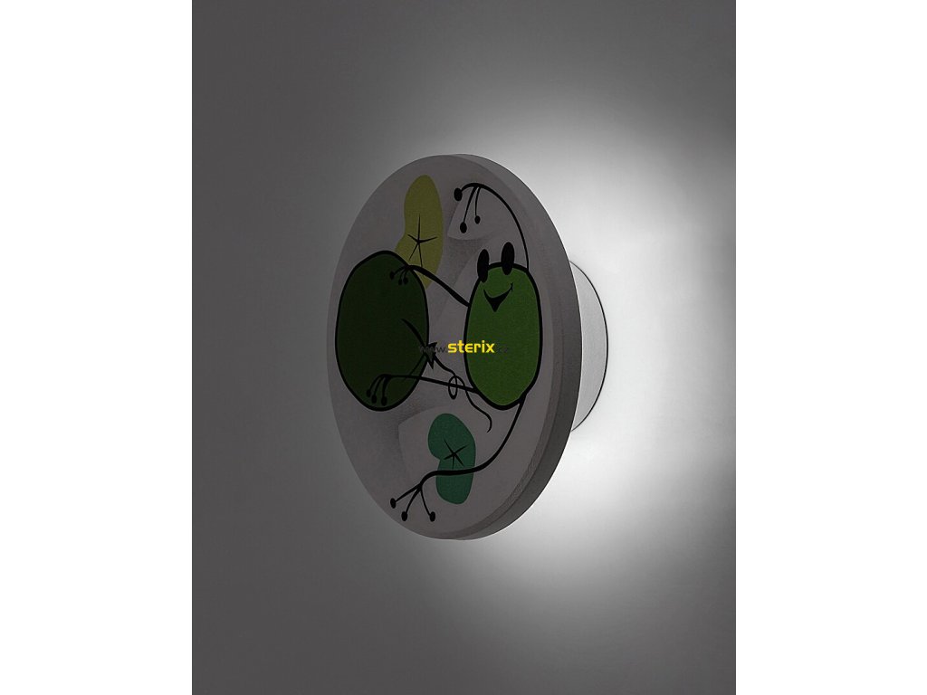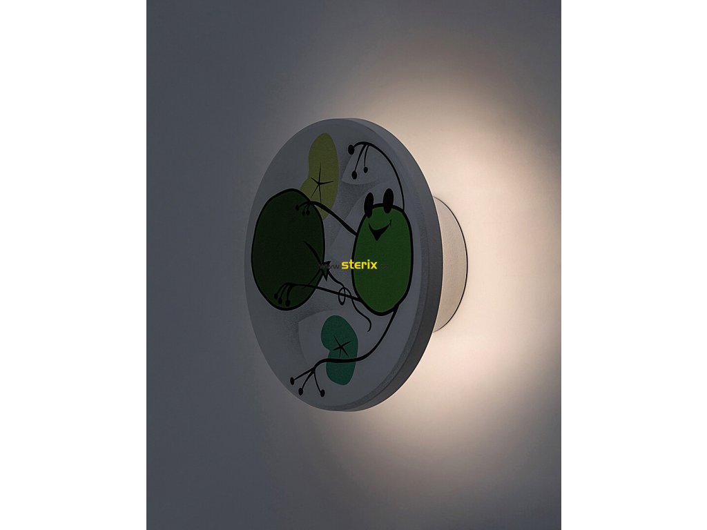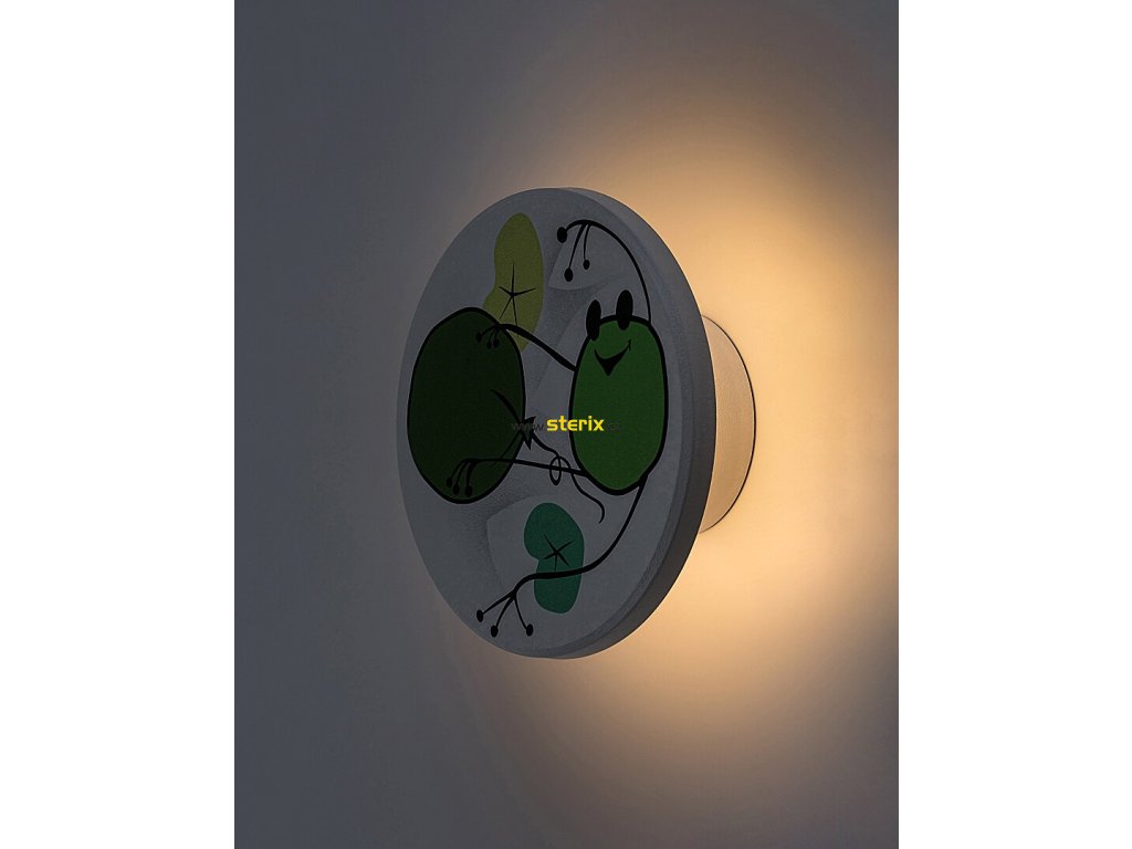 Rabalux Froggo detské nástenné svietidlo je samostatne navrhnutý model od Rabalux. Odporúča sa predovšetkým pre tých, ktorí hľadajú farebné doplnkové svetlo s dlhou životnosťou do detskej izby. Malá lampa má okrúhly tvar, kovový držiak a plastové tienidlo s potlačou. Biele tienidlo je zdobené vtipným motívom žaby a balóna, ktorý zaručene vykúzli úsmev na tvári obyvateľa miestnosti. Hlavnými farbami motívu sú zelená a žltá, ktoré sú svieže a veselé, čo je ideálna kombinácia pre akúkoľvek detskú izbu. Detská lampa má vstavaný LED svetelný zdroj, ktorého farebná teplota sa dá nastaviť pomocou DIP prepínača. Lampa je podsvietená na stene a má káblový vypínač. Vďaka LED technológii je detské nástenné svetlo charakterizované energeticky efektívnou prevádzkou a dlhou životnosťou.