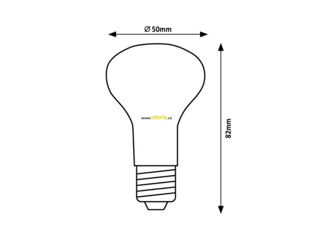 - Matná plastová žiarovka v tvare reflektora R50 s päticou E14