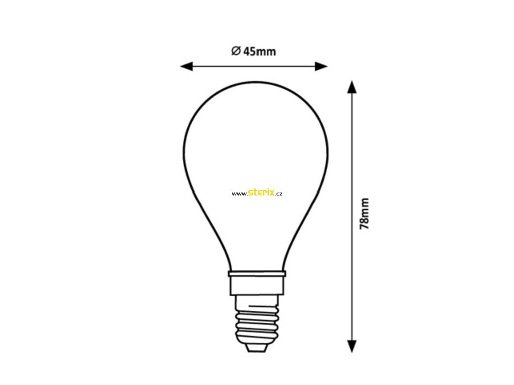 - Moderná a úsporná sklenená stmievateľná LED Filament žiarovka tvar G45 s príkonom 6W a päticou E14