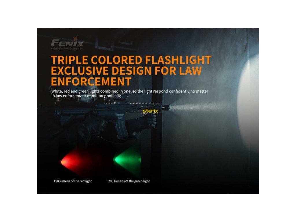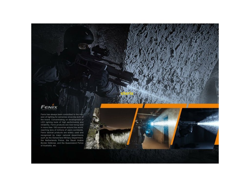 - So svietidlom je kompatibilné aj toto príslušenstvo: káblový spínač AER-03 a AER-03 V2.0, držiak na bicykel, držiak na bicykel Fenix, držiak na zbraňovú lištu, bočný držiak, držiak na hlaveň, magnetický držiak na hlaveň, držiak na svietidlo na optiku, kovový držiak na optiku a puzdro APL-MT.