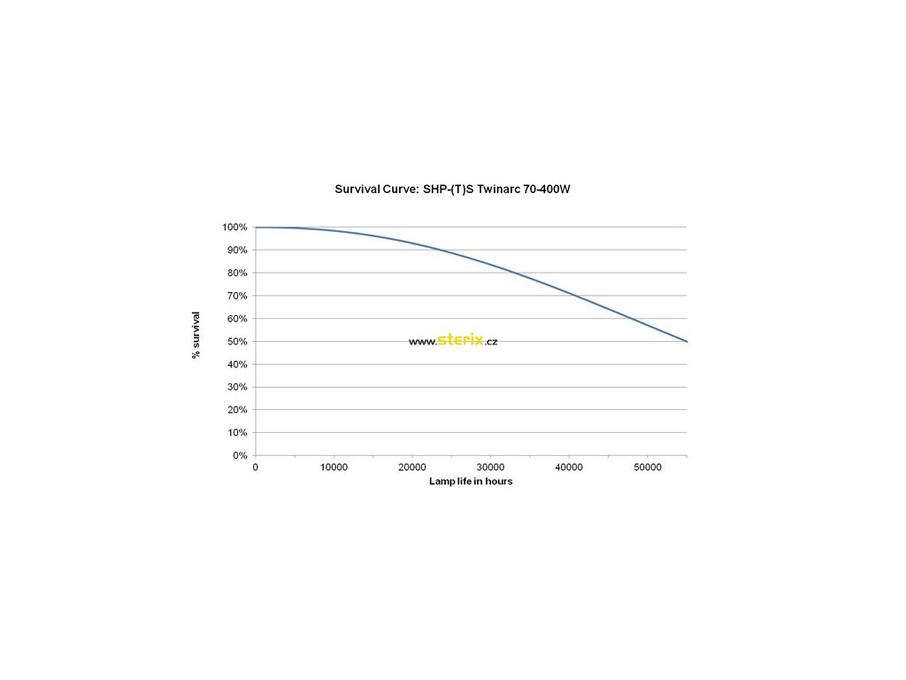 - Super vysokotlaková sodíková výbojka s dvojitou trubicou, ktorá zaručuje okamžité zapnutie po prerušení napájania a zdvojnásobuje životnosť lampy
