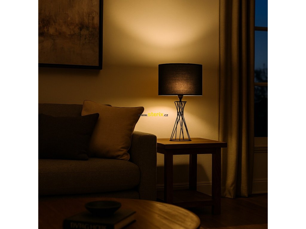 Stolná lampa Rabalux Nivra je ideálnou voľbou pre tých, ktorí hľadajú moderné doplnkové svietidlo s kreatívnym dizajnom. Tento model je kompletne vyhotovený v čiernej farbe, stojí na kovových nožičkách, ktoré spoločne tvoria kužeľovitý tvar zakončený kruhovou základňou. Tienidlo má valcový tvar, je otvorené hore aj dole a je vyrobené z čiernej textílie. Nočná lampička sa odporúča predovšetkým do spálne a obývacej izby. Je určená pre jednu žiarovku s výkonom maximálne 40 W. Pätica žiarovky je typu E27. Keďže je tienidlo vyrobené v tmavej farbe a prepúšťa len málo svetla, tento model je ideálny na diskrétne nočné osvetlenie. Stolná lampa je doplnená čiernym textilným káblom a káblovým vypínačom. Dodáva sa bez zdroja svetla.- Rabalux 74082 stolná lampa NIVRA, štýl dekoračný