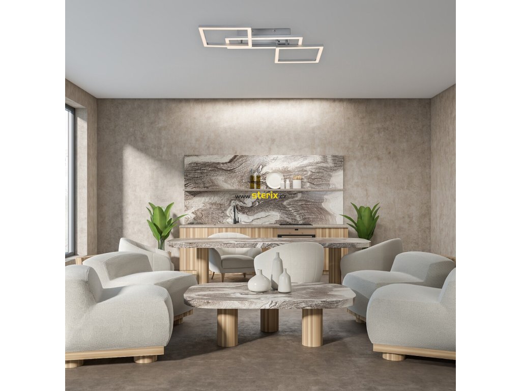 Stropné svietidlo Rabalux Ellinor je odporúčané tým, ktorí hľadajú inteligentný model s vysokou svietivosťou. Toto moderné a pôsobivé LED svietidlo je vyrobené z kovu v chrómovej farbe s bielym plastovým tienidlom. Svietidlo sa skladá z troch krížiacich sa štvorcových prvkov a dá sa pripevniť k stropu pomocou obdĺžnikovej dekoratívnej základne. Obsahuje vstavaný LED svetelný zdroj, ktorého teplotu farby je možné upravovať diaľkovým ovládaním alebo nástenným vypínačom. Okrem toho ponúka ďalšie inteligentné funkcie, ktoré je možné ovládať diaľkovým ovládačom, ako je nastaviteľný jas, pamäť, časovač a nočné osvetlenie. Vysoká svetelná intenzita tohto modelu z neho robí perfektnú voľbu pre priestrannejšie miestnosti. Je ideálne pre moderné obývacie izby, jedálne a spálne. Vďaka LED technológii je charakterizované energeticky úspornou prevádzkou a dlhou životnosťou.