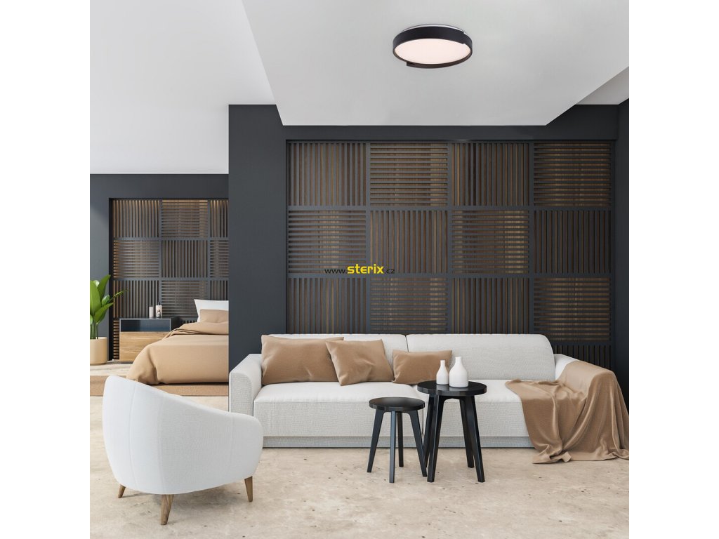 Rabalux Laleh stropné svetlo je ideálnou voľbou pre tých, ktorí pri výbere lampy dávajú prednosť funkčnosti. Toto moderné svetlo s umierneným vzhľadom kombinuje čistý dizajn s celým radom inteligentných funkcií. Má vstavaný LED svetelný zdroj, ktorý zaisťuje energeticky efektívnu prevádzku a dlhú životnosť. Ako farebná teplota, tak jas môžu byť upravené, a navyše ponúka funkcie pamäte, časovača a nočného svetla. Všetky inteligentné funkcie je možné ovládať pomocou diaľkového ovládača. Stropná lampa je vyrobená z kovu v guľatom tvare, v čiernej farbe, a je doplnená bielym plastovým tienidlom. Zaujímavým prvkom dizajnu je meniaca sa šírka rámu držiaka. Toto inteligentné stropné svetlo je primárne odporúčané pre moderné obývacie izby, spálne a pracovne.