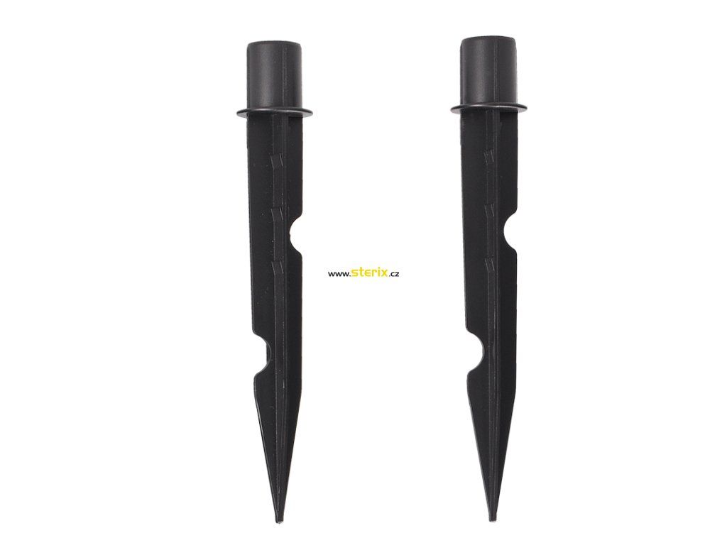 - stĺpik sa môže upevniť do trávnika pomocou 2 kolíkov alebo sa môže pripevniť k plochému podkladu pomocou skrutiek alebo skrutiek
