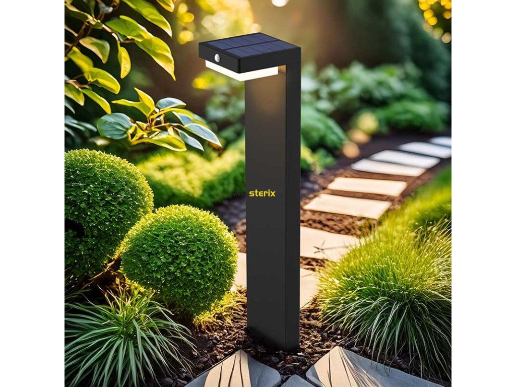 Elegantné LED solárne stĺpikové svietidlo so senzorom je ideálne na osvetlenie záhradných chodníkov, príjazdových ciest alebo vstupných zón. Ponúka rovnaké funkcie ako nástenná varianta – dva režimy svietenia, teplé biele svetlo (3000K), výkon 5 W a svetelný tok 400 lm. Vďaka solárnemu napájaniu nie je potrebné žiadne elektrické pripojenie.
