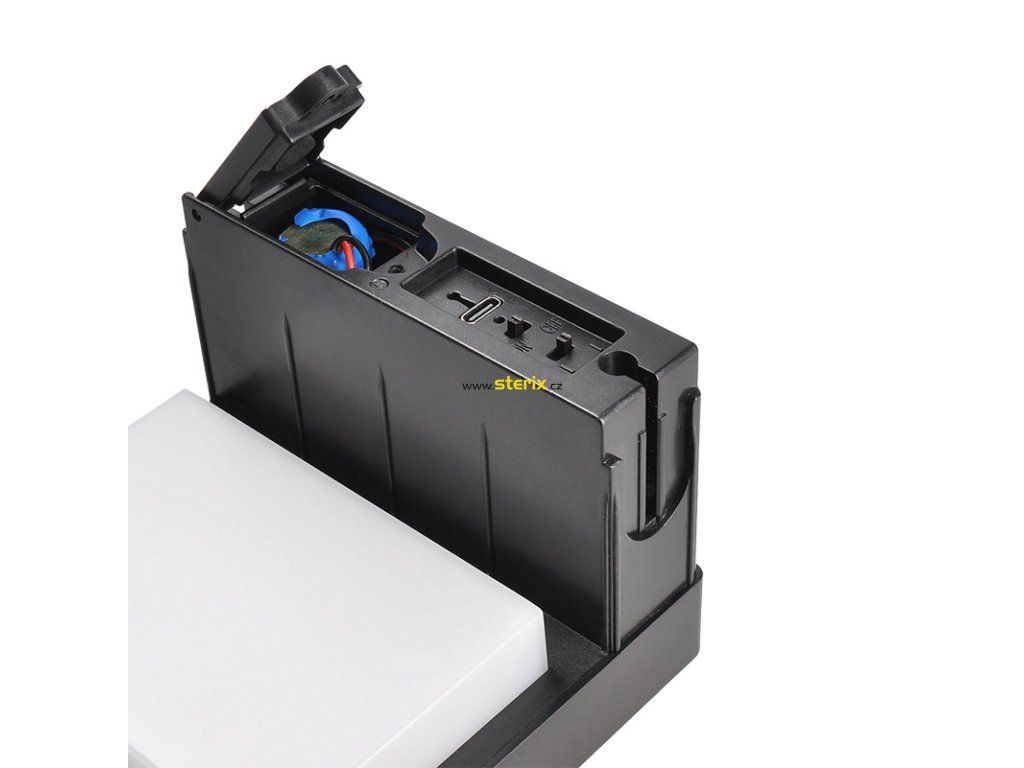 - Konektor USB C na dobíjanie svietidla v prípade nedostatku slnečného svetla