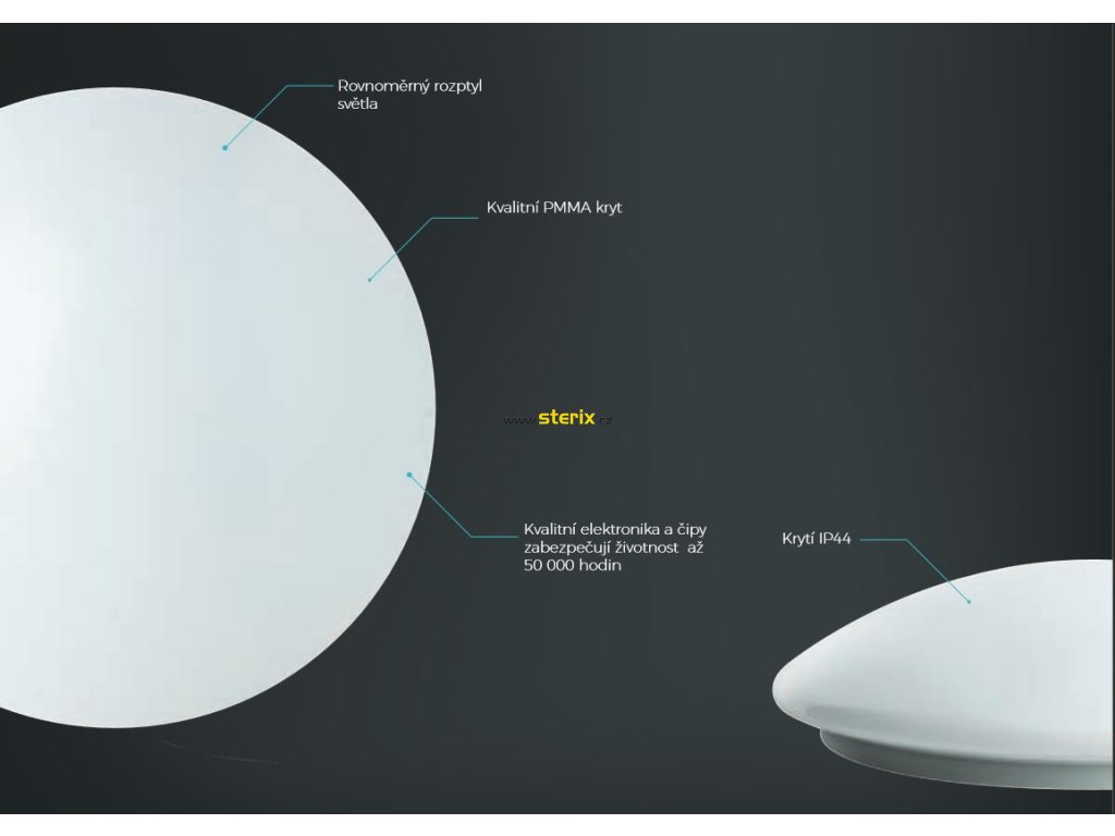 - Opálový kryt PMMA na rovnomerné rozloženie svetla
