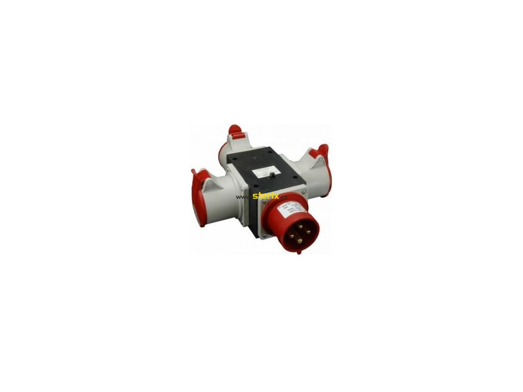 Roztrojka bez istenia, vstup IRRN 1643, výstup 3x IERN 1643, IP44 je 4-pólový adaptér menovitého napätia 400 V pre trojnásobné rozdelenie výstupu 16 A s krytím IP 44 a vysokou pevnosťou a odolnosťou. POUŽITIE: v interiéri aj exteriéri v obytných budovách a domoch na staveniskách, priemyselných rozvodoch, a pod.