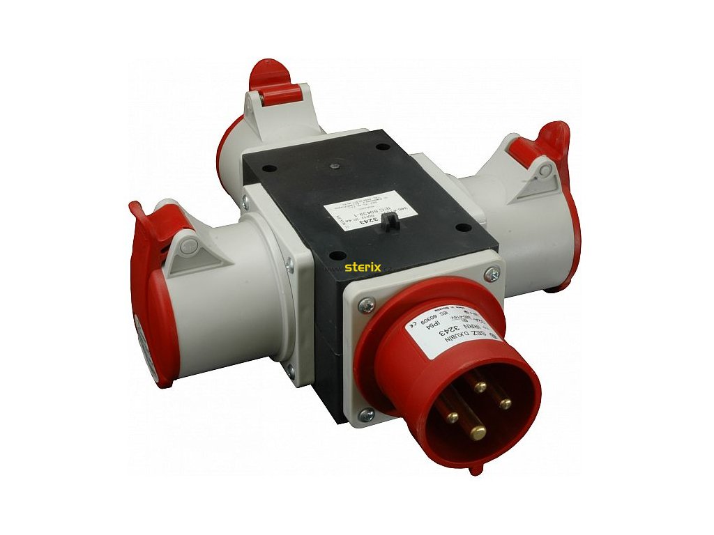 Roztrojka bez istenia, vstup IRRN 3243, výstup 3x IERN 3243, IP44 je 4-pólový rozbočovací adaptér s 3x výstup IERN 1653 s krytím IP 44 a vysokou pevnosťou a odolnosťou. POUŽITIE: v interiéri aj exteriéri v obytných budovách a domoch na staveniskách, priemyselných rozvodoch, a pod.