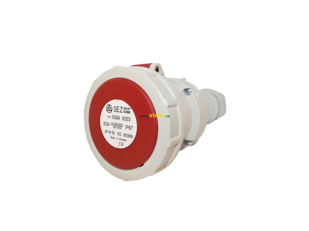 Priemyselná káblová spojovacia zásuvka SEZ ISGN 6353 je 5-pólová rovná spojovacia zásuvka pre menovité napätie 400 V s prúdom 63 A a vonkajším krytím IP 67.