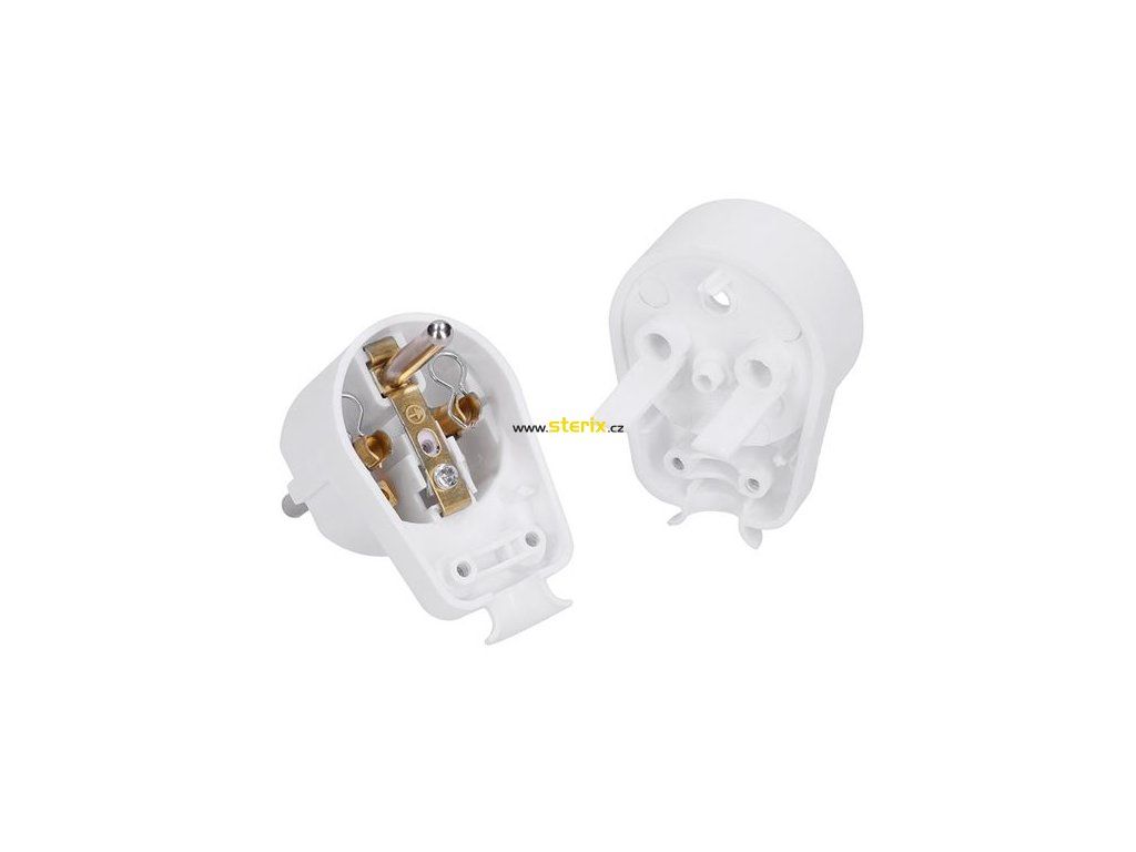 Plochá vidlica na káble, biela, IP20.