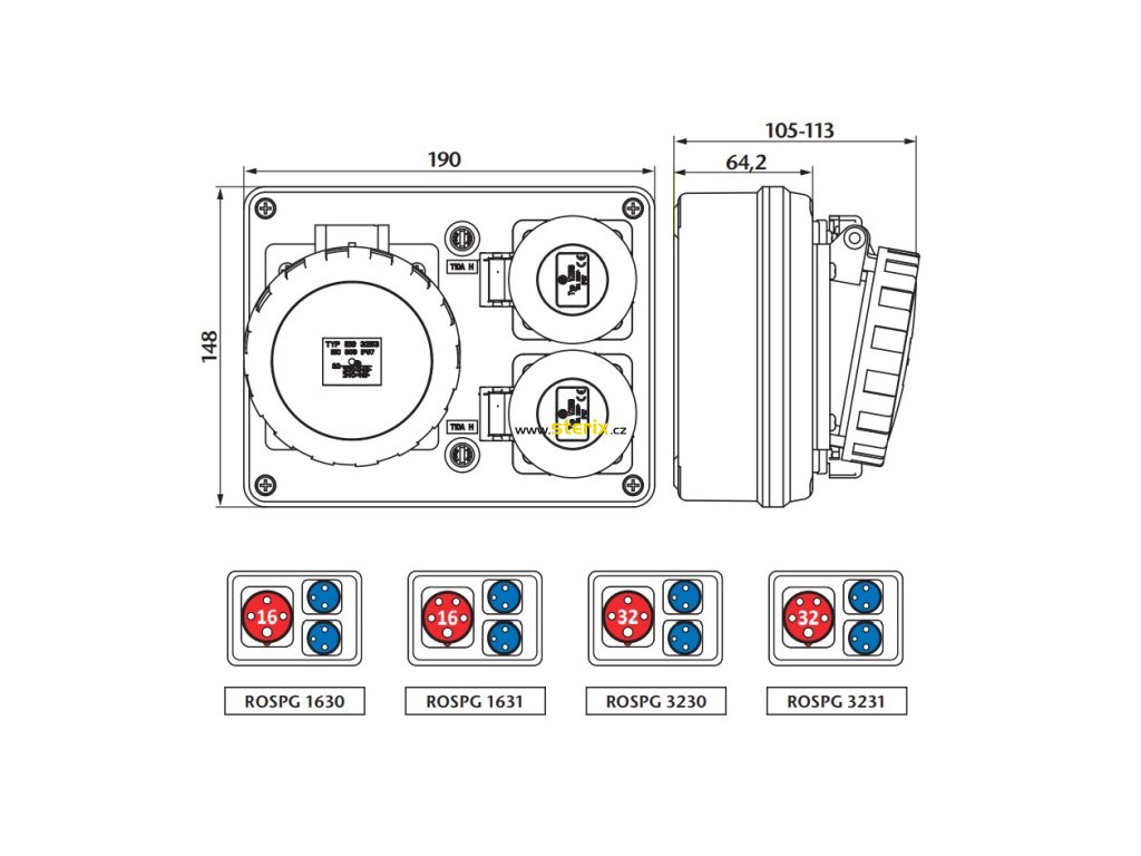 - Minizásuvková rozvodnica Praktik, IP 67, 1x1653, 2x230 V SEZ DK ROSPG 1631