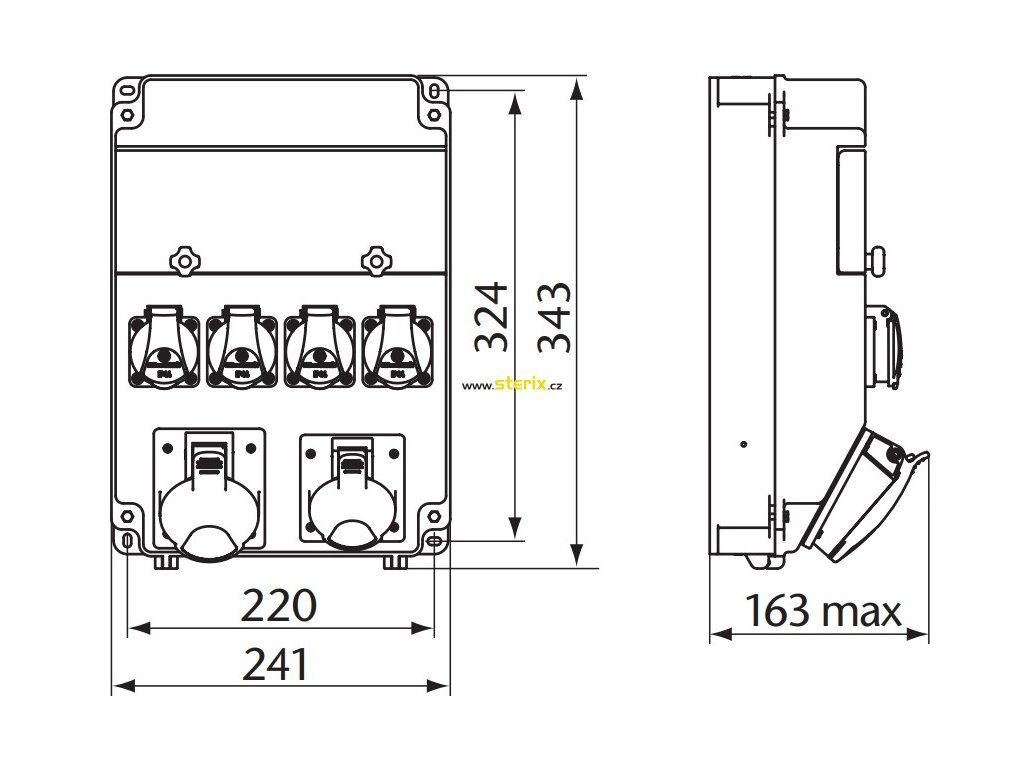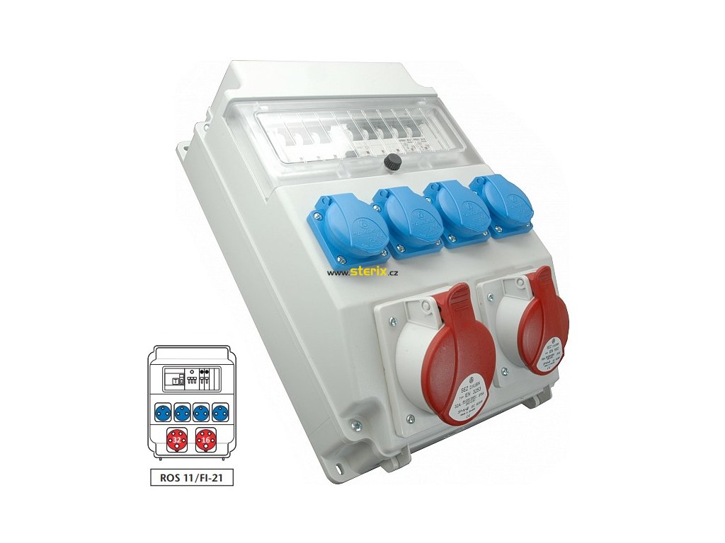 - Zásuvková rozvodnica 1x3253+1x1653+4x230 V, istená, s chráničom, IP 54 SEZ-CZ ROS 11/FI-21